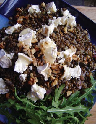 The combination of oils and spices in the salad dressing given in this recipe from Irish Seaweed Kitchen perfectly complements the robust flavour of goats' cheese, while the Alaria gives the puy lentils a real flavour lift. Puy lentils are ideal for salads because of their unique peppery flavour and the fact they hold their shape during cooking. They are identified by the area of cultivation where they are grown, in the Le Puy region of France.