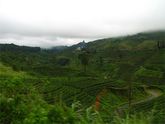 The brightly dressed tea pickers were already in the gardens when we arrived, all women, working at lightning speed, expertly plucking the tender leaf tips with their finger tips and flicking them into the basket strapped to their backs. The Tamil Plantation workers are contracted to pick a minimum of 20 kilograms a day and receive a bonus for any extra picked. The tea bushes are pruned to one meter in height every five weeks for ease of picking.