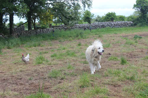 Judy the sheep dog and her pups complete the canine staff on the Friendly Farmer’s Knockbrack poultry farm. Livestock guardian dogs are an ancient solution to a common farming problem.