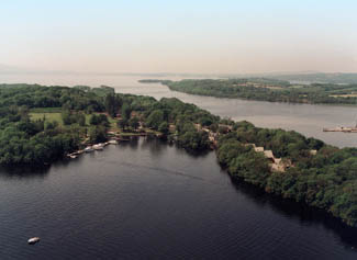 Northwest of characterful  Enniskillen, the river channels open out into the broad spread of Lower Lough Erne, a magnificent inland sea set off against the spectacular heights of the Cliffs of Magho. Through this broad lake, the River Erne progresses to the sea at Ballyshannon in Donegal by way of a rapid descent at Belleek in Fermanagh..