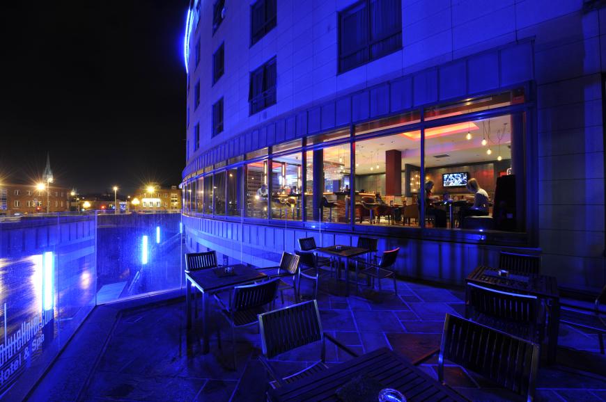 Located on the far side of the River Shannon where the Abbey River flows into it, this stylish modern hotel enjoys a great site with a waterside bar and restaurant, decked outdoor seating area and views of the hills - and a peaceful situation in what is still a city centre area.