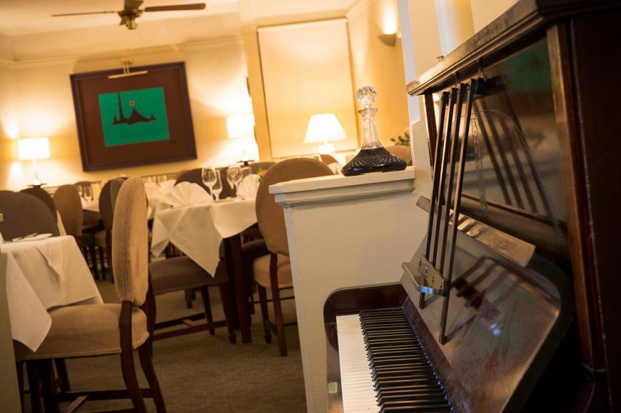 The restaurant is a lovely room, furnished in an upbeat classical style that makes a fine setting for some outstanding cooking. Meals served here are naturally more ambitious, with a dinner menu and à la carte options both available, and live piano playing on most Saturday nights creates a great atmosphere.