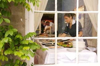 Ballymaloe brown bread; French peasant soup; a selection of their own patés and terrines served with brioche and home-made chutney; grilled Ballycotton cod with prawns, sauce beurre blanc & garden sea kale; Irish farmhouse cheeses with home-made biscuits; and an irresistible dessert trolley that includes country sweets like rhubarb compôte, and home-made vanilla ice cream are typical of simple dishes that invariably delight. The teamwork at Ballymaloe is outstanding and a meal here is a treat of the highest order.