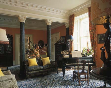 The Italianate style of the present house - including a remarkable pillared hall with a baby grand piano and open fire - dates from the mid-19th century when modifications were made to the original house of 1728.