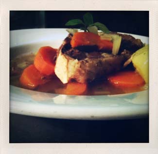 A deeply flavoured beef & stout casserole is made with Blackrock Stout from Dungarvan Brewing Company; corned beef and parsley sauce is served with cabbage and champ; old style roast chicken comes with stuffing and gravy; and there may be baked cod on parsley mash - followed by deliciously homely desserts like pear and apple cobbler or a warm chocolate gateau with whipped cream.