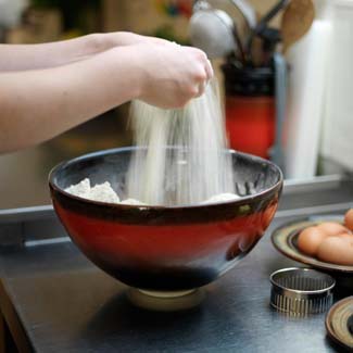 As you enter, there's a ground floor showroom, reception area and the workshop, where Louis himself may well be at work and visitors can try their hand at throwing a bowl. Upstairs there's a larger showroom area and the café, which is in a lovely light-filled room with about a dozen simple glass-topped tables (sporting small Mulcahy vases with local flowers, and paper napkins) and a counter, where you select food which is then brought to your table.