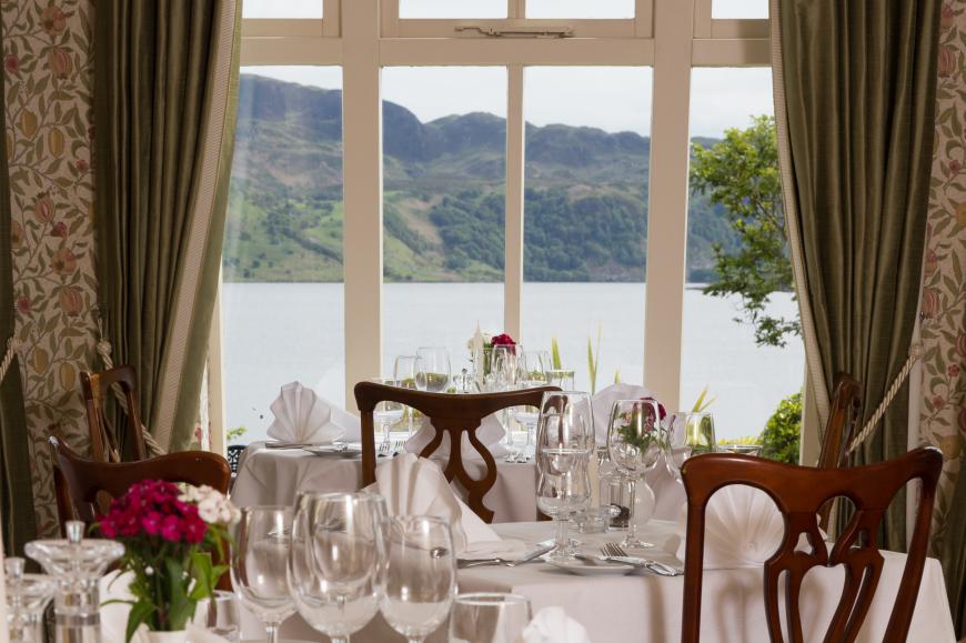 Beautifully situated overlooking the lake, the restaurant is a fine room with well-spaced, elegantly appointed tables and a relaxed atmosphere. With a piano playing softly, a great sense of hospitality and the promise of delicious food to come, this is a very pleasing place to be - and it is open to the public as well as resident guests, which makes for a livelier atmosphere.
