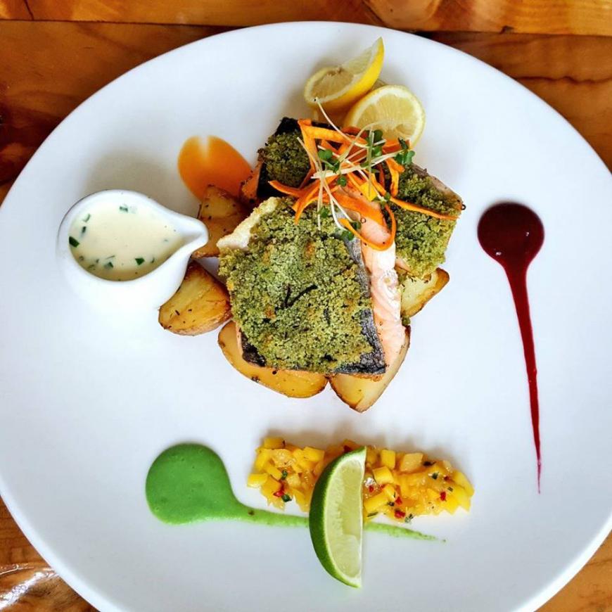 Steak and seafood are the stated specialities, and they offer a very good lunchtime menu with favourites such as the elegant tower of Kellys of Newport Black and white pudding Lasagne made with fresh light pasta sheets and drizzled with a creamy shallot sauce. Eala Bhan utilises all fresh local organic produce and this shines through in their local beetroot carpaccio with goats cheese fritters and dressed organic baby leaf salad with candied almonds .