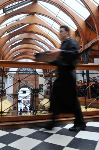 Seats 110; children welcome. Meals Mon-Sat, 8.30am-5pm: B'fst 8.30-11, L 12-3.30; otherwise light snacks. Bookings accepted for The Dining Room (table service); The Balcony (overlooking market) is self-service. Closed Sun, bank hols, Dec 25-3 Jan. Diners, MasterCard, Visa. abbreviations