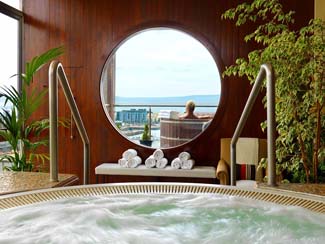 The hotel’s Square Spa & Health Club is on the top storey, with panoramic views over Galway city and harbour from the rooftop hot tub - which are interesting rather than scenic.