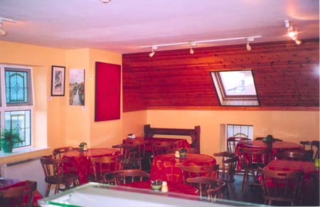 Go under the archway beside Kate McCormack’s sixth generation butcher’s shop in Westport and up the stairs, where you will find an art gallery on your right and, on your left, this small, unpretentious restaurant with an open counter displaying an array of good things, including home-baked cakes, quiches and patés - the product of generations of family recipes and particularly of Annette McCormack’s table.
