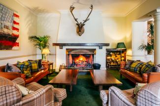 The waterside location is beautiful, and welcoming fires always burn in the handsome foyer and in several of the spacious, elegantly furnished reception rooms, including a lounge bar area overlooking the tumbling waterfall.