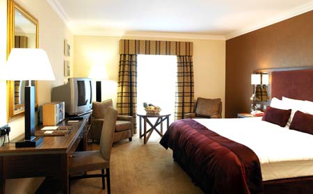 Pleasing contemporary design combines with quality materials and a great sense of space in large, clean-lined bedrooms and public areas - including a clubby bar with leather easy chairs and sofas which golfers, in particular, are sure to enjoy; the decor is low key and the ambience throughout is that of a comfortable gentleman's club.