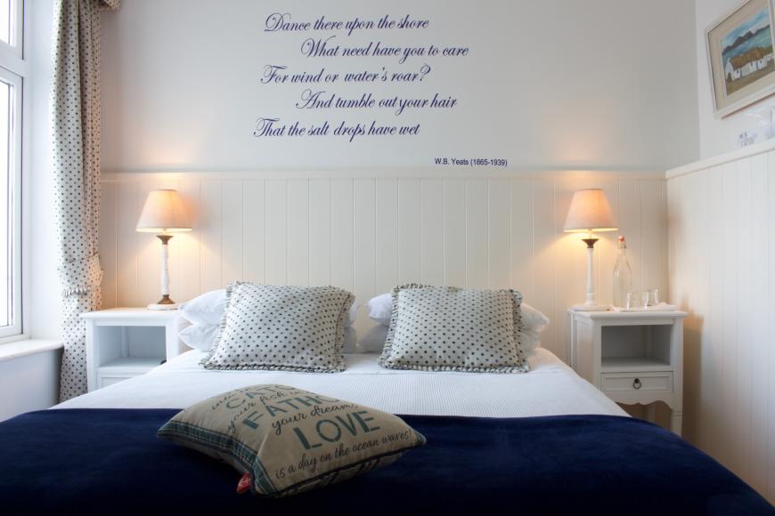 Joe and Jackie are natural hosts and their B&B is unselfconsciously stylish. The décor is like a breath of fresh sea air, with bright white walls throughout, crisp white duvets and pops of colour or nautical stripes from throws and pillows.
