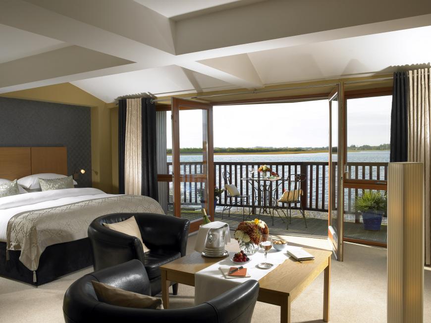 Ray Byrne and Jane English’s lovely lakeside lodge styles itself ‘Ireland’s first wine hotel’ and, although it is not an hotel but a four star guesthouse, the accommodation - which now offers thirty beautiful rooms, a hot tub and treatment rooms - is nothing less than stunning. A covered lakeside boardwalk leads to the front door: you enter your guest key card and step into a different world.
