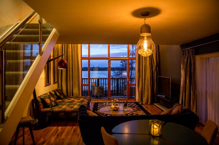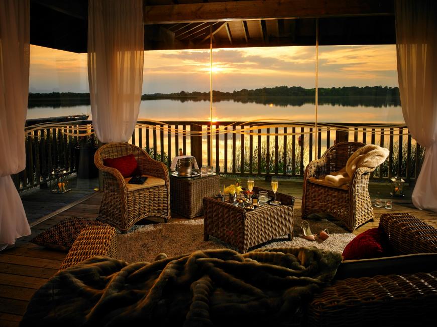 A lofty residents’ lounge with a stove and its own bar simply oozes style and comfort, a hint of the high pamper quota waiting above in spacious suites and guest rooms, all with private balconies overlooking the lake.