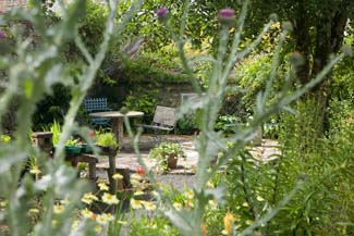 The next step was to remove an awkward slope and to create instead a lower garden scheduled to become a potager with a rill running down the centre. Roofless outbuildings have been converted into charming guest accommodation and the Victorian house, built around an old hunting lodge, restored.