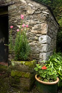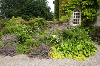 Burtown is a productive place in every sense: the late Wendy Walsh, acclaimed botanical artist, had her studio and home here, set in a crescent of borders shading from silver blue to yellow orange and including many plants which she was given to plant and later planted out in the garden.