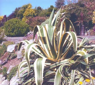 Little paths wind in between features, allowing the opportunity to admire the myriad tender and unusual plants. Restios, abutilon melianthus, hibiscus, yuccas, watsonias, leptospermum, aloes, agapanthus and kangaroo paw look all the more exotic near the wild seashore setting, and oleander, plumbago and tibouchina prosper in the greenhouse.