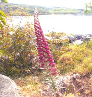 Mary and Bob only began gardening seriously in 1991 when they retired to their holiday home overlooking Dunmanus Bay. They began in front of the house planting Olieria macrondontaas a wind break and then shrubs interspersed with plants. Quite without their ever intending it to happen, the garden has grown to three and a half acres, embracing a natural rockery area, a grassy stream garden planted with trees, a vegetable garden and a seaside path between fuchsias and camellias.