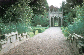 A garden punctuated by a collection of architectural follies salvaged from the demolition of Glendalough House