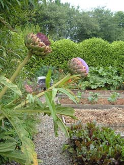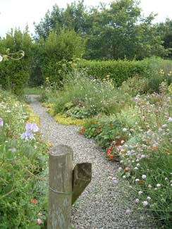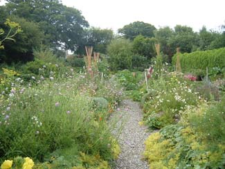 There is something very heartening about a productive garden, where all the plants are useful as well as decorative. Created by Jean and Peter Perry, this five acre seaside garden exists in happy synergy with their other enterprise, the Courtyard Café.