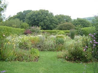 The herb garden, where medicinal and dye plants are grown in beds edged with silver santolina, also serves the café. Other areas of the garden earn their keep too, the cutting garden looks good and is full of excellent flowering plants for the vase like, dahlias, lupins and love in the mist.