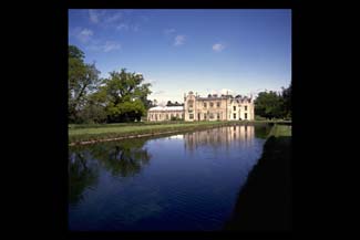 The main elements of the design are the 152m twin long ponds or miroirs d’eaux, similar to those at the Chateau de Courances, designed to reflect the house originally built in 1652 and Tudorized in 1820. Beyond them is a curious water feature known as the Stops, fed by an aqueduct from half a mile away, beyond them again an avenue of limes continues the perspective of the ponds.