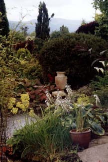 Picture a rill lined with primrose globes of scented Primula florindaeand diarama beside a scree bed, a shady peaceful area with ferns like the tatting fern and the painted fern, and damp loving plants beside the stream - and irresistible paths leading to a sundial or specimen tree. There are all kinds of inventive ideas, a clematis and rose arch leading to a seating area paved with old kitchen flags, a Berberis thunbergiitreated as a topiary globe, and urns filled with ruby sedums.