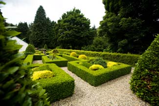 The garden at Kockanree reflects its creator Harold Clarke’s idea that one should never know what to expect around the next corner. And indeed it full of surprises, from the ‘Moonstone,’ a giant orb of granite like a miniature planet fallen to earth, to a family of Indian elephants, a laburnum tunnel raining gold, to Phoebe, forever reading her marble book in the shade of a sycamore tree. It would spoil the surprises to reveal more.