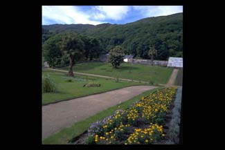 The garden is divided in two with a stream and woodland garden and a double herbaceous border to shield the gentry in the formal garden from views of the vegetable garden. There were originally 18 glasshouses and a bothy house for the garden boys, who had to ensure the boilers remained lit, and the East Vinery has been restored.