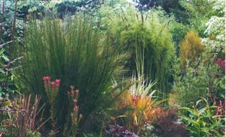 They began collecting 40 years ago, long before the various genera became fashionable. When the Stonards retired and moved to Cork in ‘98 the collection came with them. And in spring 2000 their two acre plot was planted with over a hundred species, varieties and cultivars, representing 18 different genera. The bamboos were displayed to show off their individual habits around grass and gravel paths.