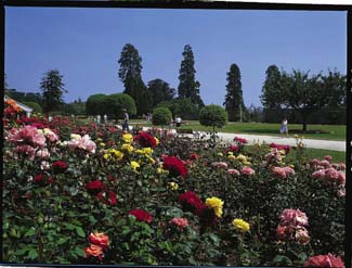 Further chapters in the garden’s history included the addition of a woodland walk known as Tower Valley, planted with rhododendrons - including some magnificent large leaved varieties, conifers with a pepper pot tower as a focal point, and a ‘Japanesey’ garden. This European version of a Japanese garden is set in a hollow with two Japanese bridges, pools and acers, and has recently been restored and replanted. Beside it is a weeping grotto built from volcanic stone, where ferns and mosses flourish.