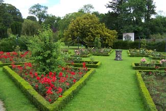 A rose garden with cluster flowered reliables like ‘Trumpeter ‘and’ Sexy Rexy’ is overlooked by a raised viewing point surrounded by a pergola. Period details like the tennis court and croquet lawn, redolent of the leisured era of the ‘big house’, have been retained - and the most recent phase of restoration has taken in the vegetable garden and the old glass house, with the additional feature of a Georgian teahouse.