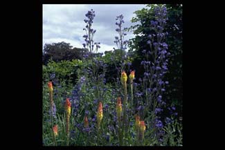 The great south border in the restored six acre walled garden at Strokestown Park is a happy tribute to changed times. Colour keyed, with planting running through the shades of the spectrum from sizzling red hot pokers and blazing ligularia to coolest blue delphiniums, the 18 foot deep bed has put Strokestown on the map as the garden with the longest borders in these islands.
