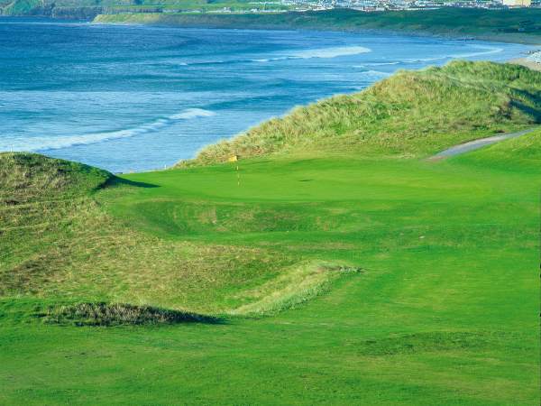 The 11th hole captures the dramatic beauty of Ballybunion like no other. Described by Tom Watson as the best par four in the world, it is played from a dramatic, elevated tee, down towards a green with a frighteningly narrow entrance. And to the right, there are spectacular views of the wild Atlantic.