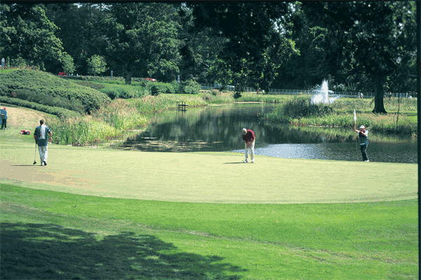 One of the finest holes on the Palmer Course is undoubtedly the par five 7th hole, which measures over 600 yards from the championship stakes. The hole double doglegs its way over sand, rough and water, while the green occupies its own little island which is sandwiched between two arms of the River Liffey.