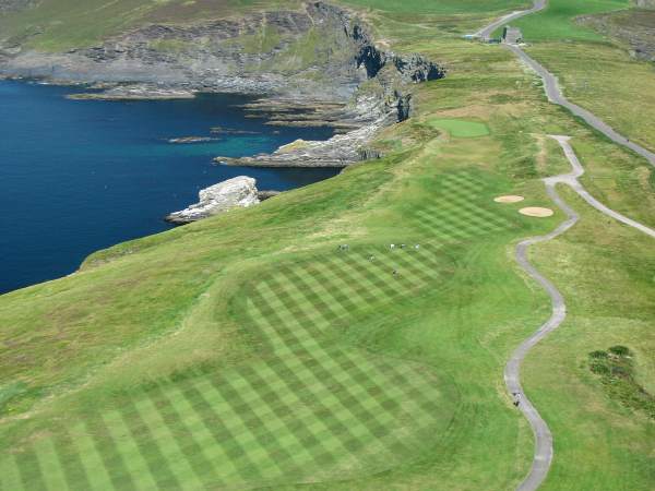 Old Head, par 72, comprises of five Par 5s, five Par 3s and eight Par 4s – stretching to over 7,300 yards from the tips, with a minimum of six tees per hole. All eighteen holes provide stunning ocean views. With the ever-changing sea breezes, the course provides a stern test to the touring pro and the high handicapper alike.